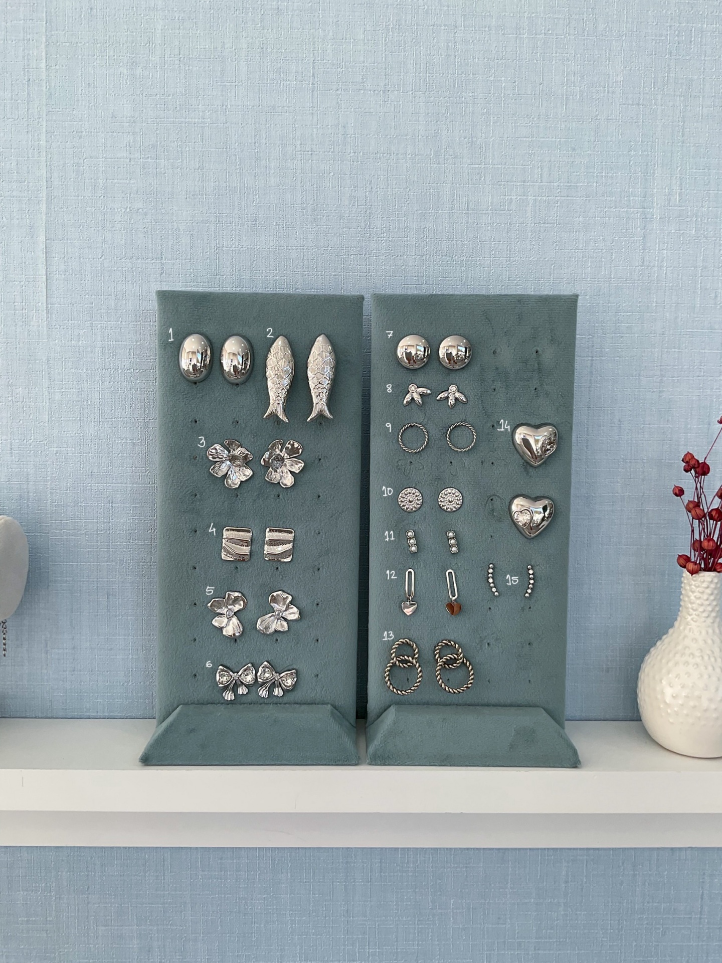 BRINCOS VÁRIOS 12,00 € Desconto de %. Material: Aço Dimensões: 2cm a 3,5cm Ler mais Modelo 1. Ovais 2. Sardinhas 3. Flores 4. Retangulos 5. Flores 6. Laços 7. Rodas 8. Brilho e 3 pétalas 9. Roda Aberta 10. Roda trabalhada 11. Três pérolas 12. Corações pendentes 13. dois circulos entrançados 14. Corações 15. Linha brilhantes Quantidade Comprar Contactar Partilhar