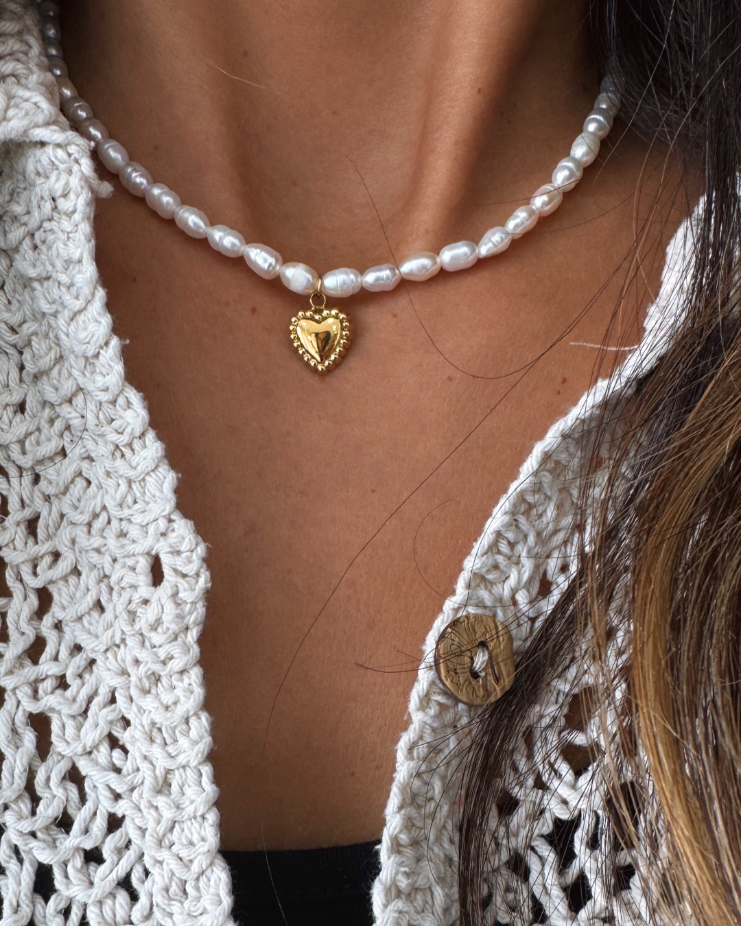 Material: pérolas de água doce e aço