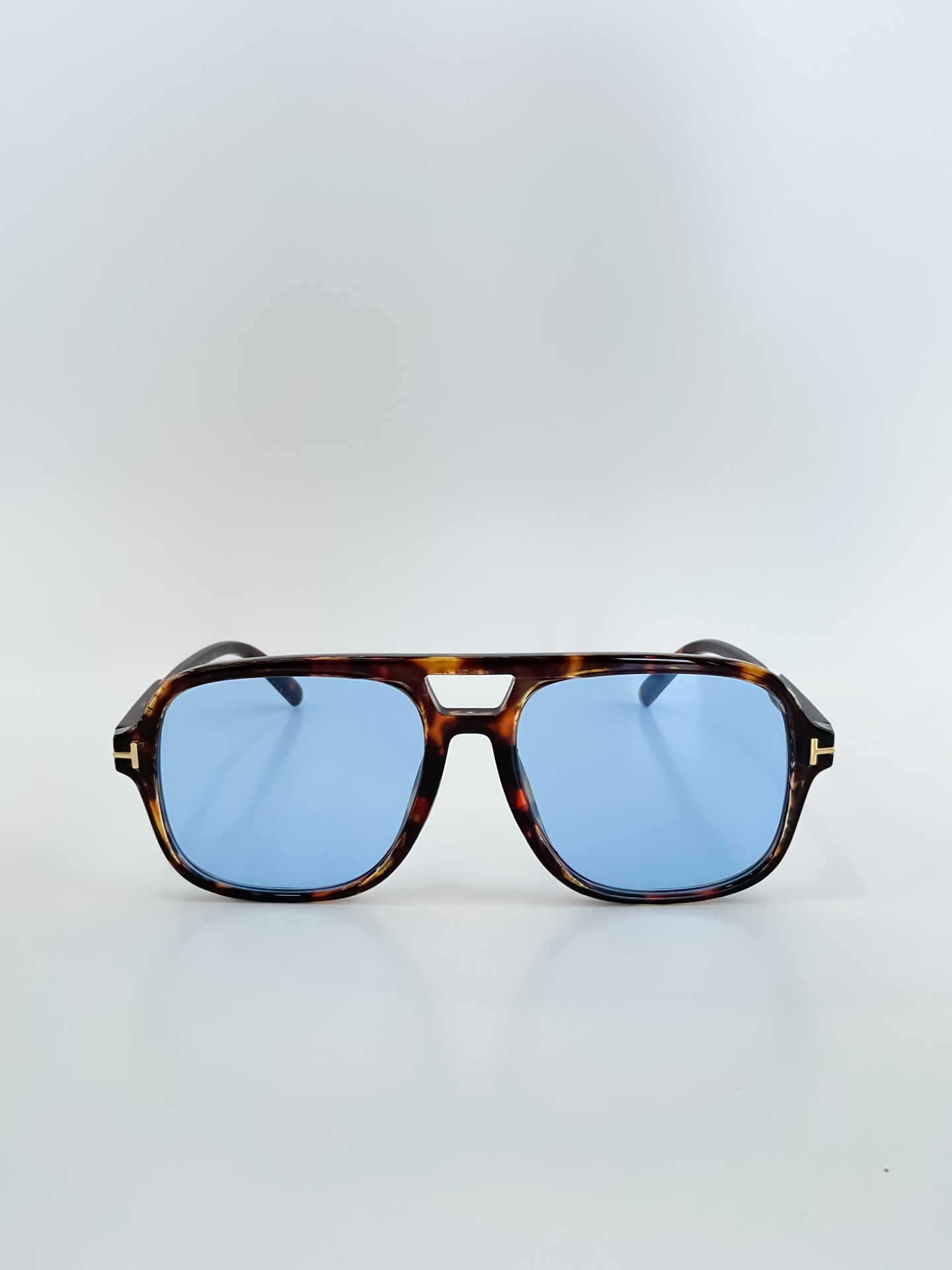 A armação em padrão tartaruga ganha nova vida com as lentes azuis, criando um contraste elegante e cheio de personalidade.