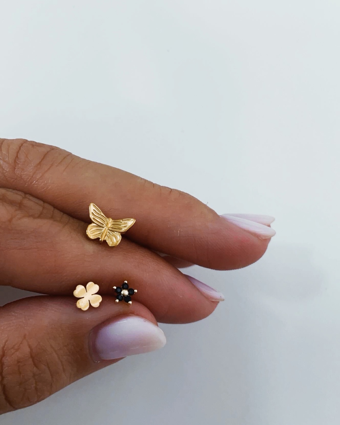 PIERCINGS 9,00 € Desconto de %. Material: AçoDimensões: 2/3mm * Vendidos à unidade. Ler mais Modelo Borboleta Trevo Flor preta Quantidade Comprar Contactar Partilhar
