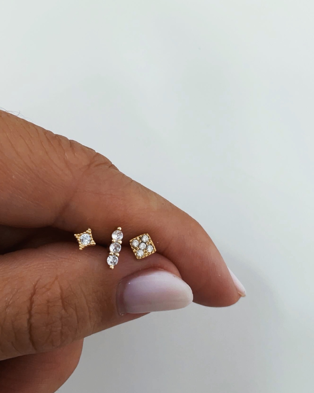 PIERCINGS 9,00 € Desconto de %. Material: AçoDimensões: 2/3mm * Vendidos à unidade. Ler mais Modelo Ponto de luz Três brilhantes Quadrado Quantidade Comprar Contactar Partilhar