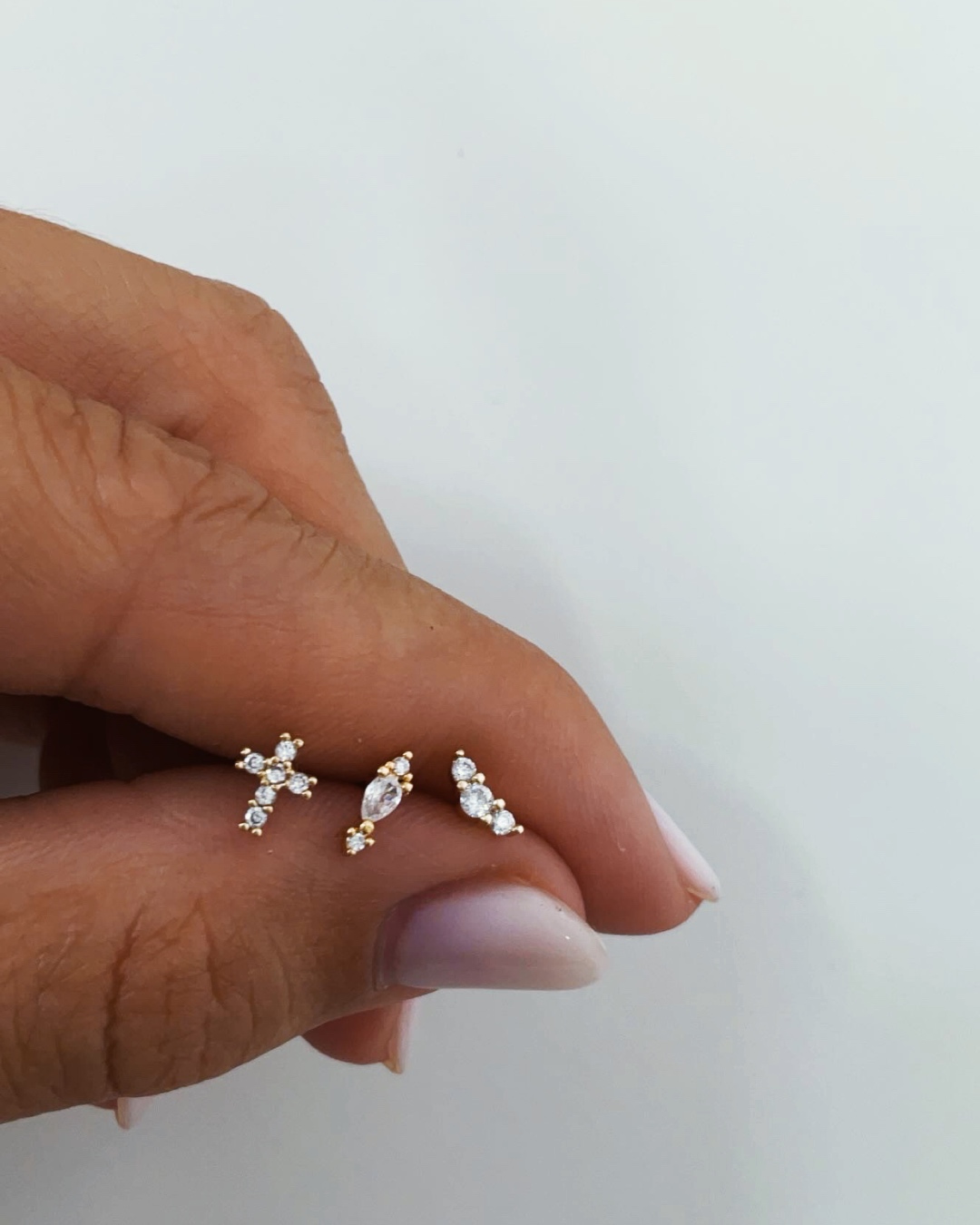 PIERCINGS 9,00 € Desconto de %. Material: AçoDimensões: 2/3mm * Vendidos à unidade. Ler mais Modelo Cruz Lágrima Três brilhantes Quantidade Comprar Contactar Partilhar