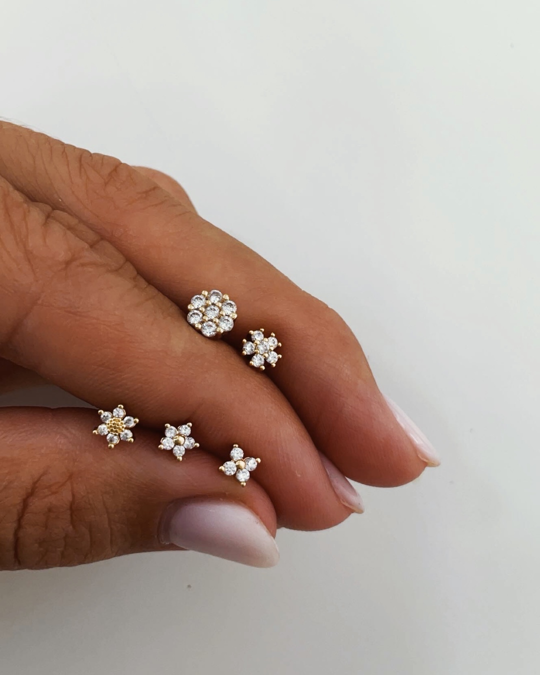 PIERCINGS 9,00 € Desconto de %. Material: AçoDimensões: 2/3mm * Vendidos à unidade. Ler mais Modelo Flor maior Flor ao lado Flor baixo á esquerda Flor do meio Flor á direita Quantidade Comprar Contactar Partilhar